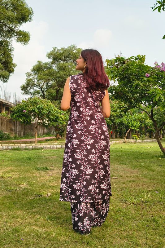 Magenta Sleeveless Flared Kurta with Palazzo Set