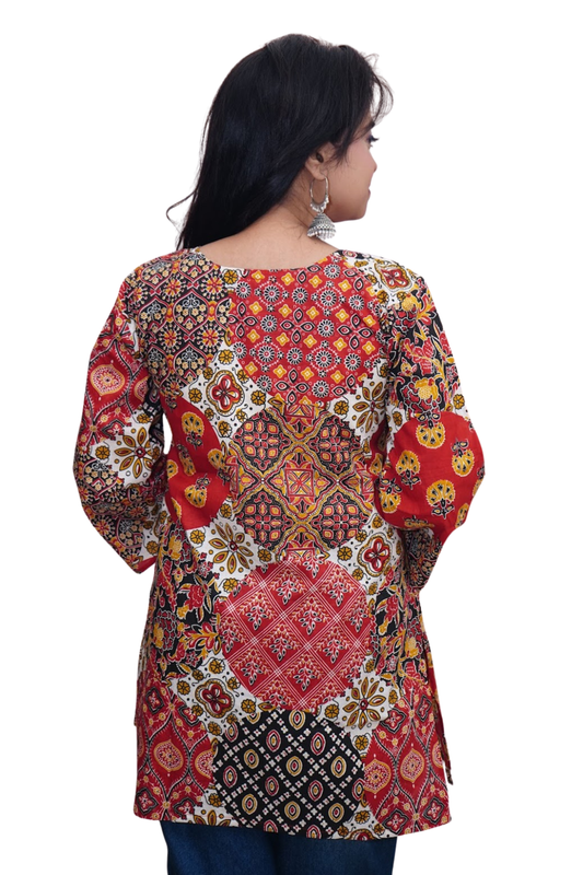 Anaya Multicolor Ajrakh Patchwork Cotton Kurti